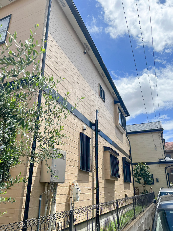 外壁を違和感なく補修し、美しく塗り替えた外装