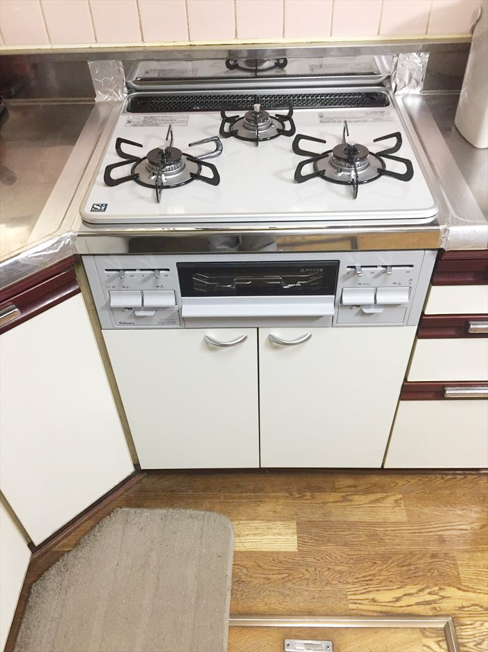 コンロキャビネットを取替えてビルトインコンロを設置