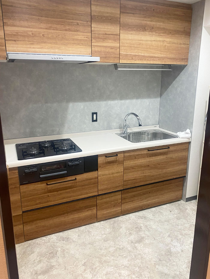 使い勝手が良くなった、木目調のキッチン