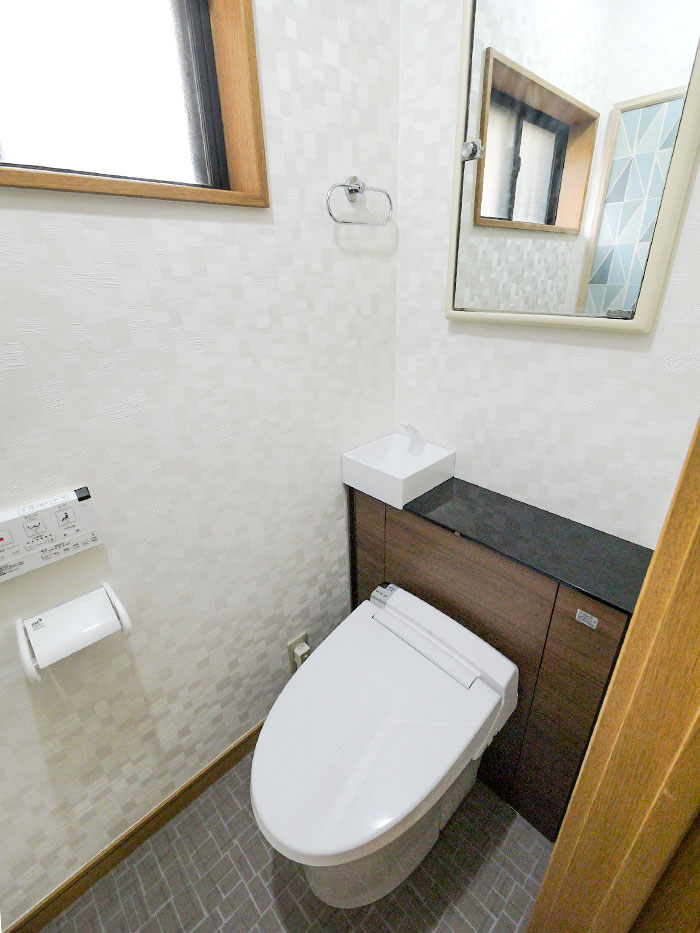 リフォレとエコカラットの色合いがマッチしたお洒落なトイレ