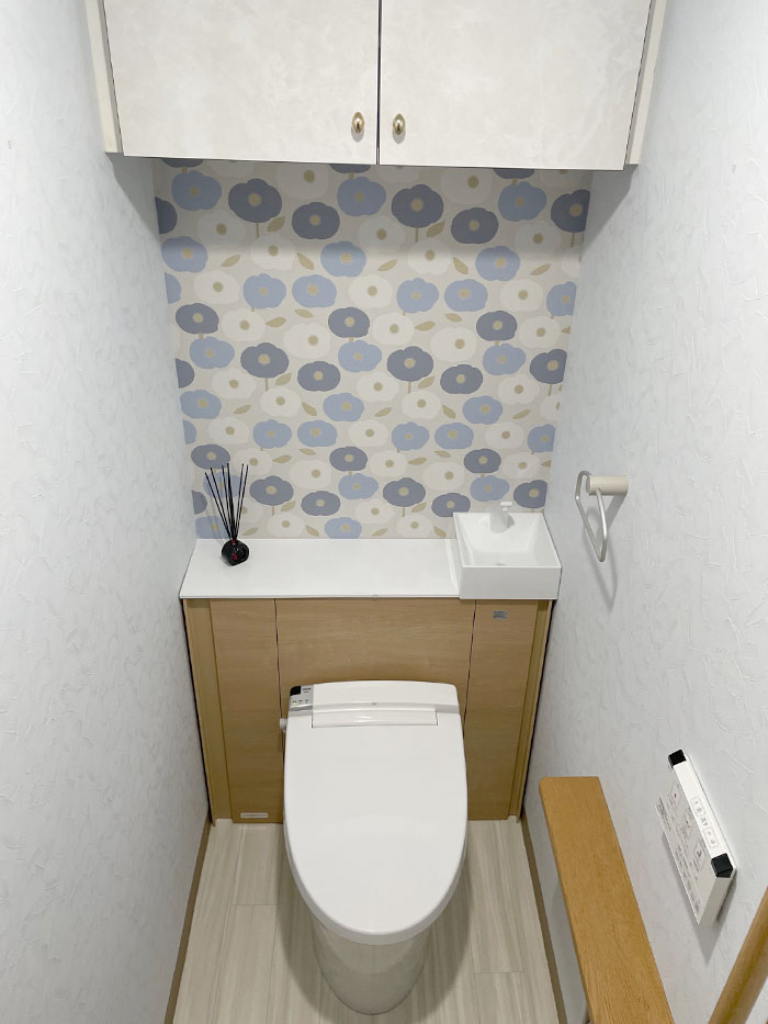 花柄のアクセントクロスがかわいい、すっきり空間のレストルーム